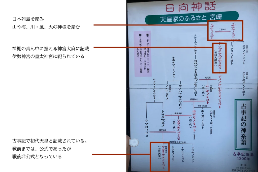 神武天皇が初代天皇であり、天照神の子孫。